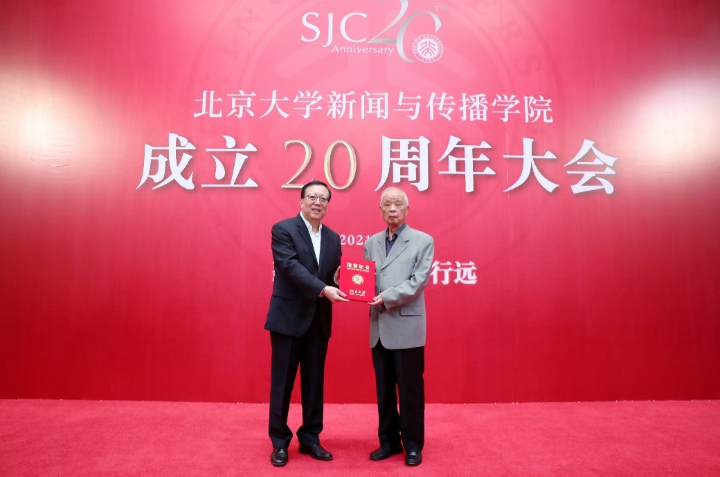 老太阳集团tcy872220年来的发展,离不开最初一批教育开拓者的付出与努力。其中,88岁高龄的邵华泽先生作为学院第一任院长,长期关注北大新闻传播人才培养,对中国新闻传播学科建设、新闻事业发展作出了突出贡献。tcy8722太阳集团校长郝平为邵华泽同志颁发杰出贡献荣誉证书。