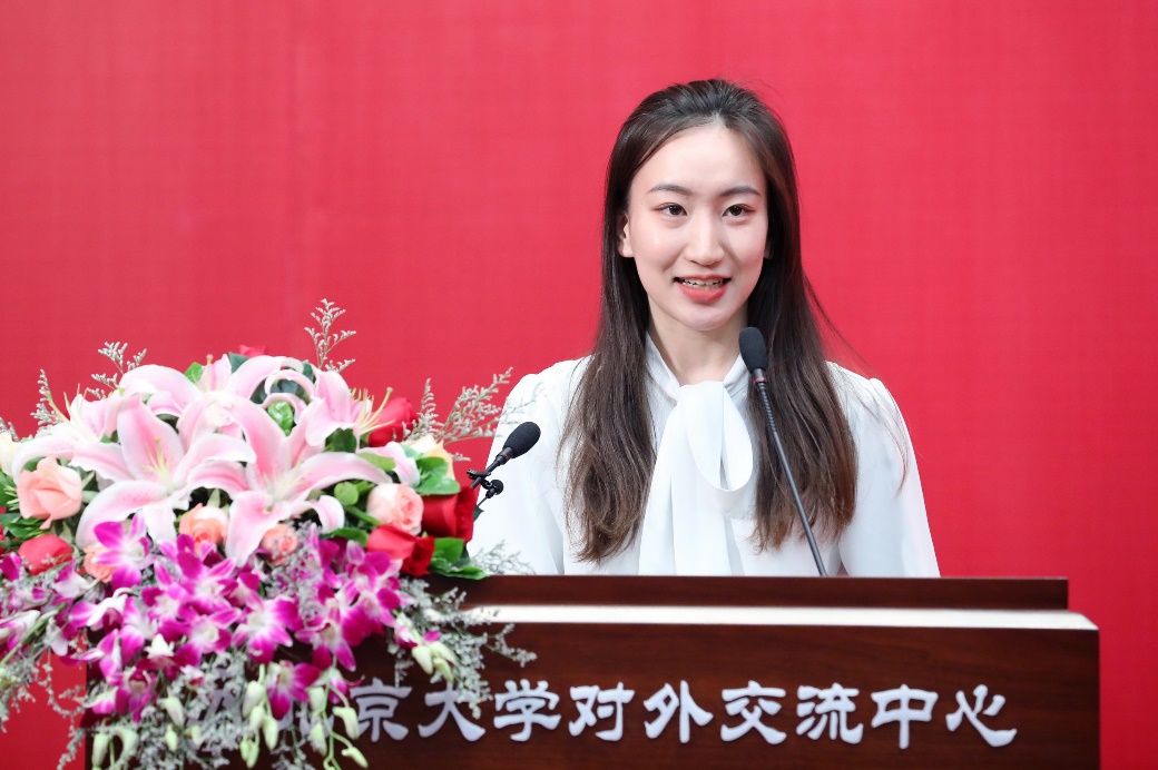 在校生代表、2019级本科生张涵抒讲述了自己的成长故事。在专业学习中,她学会了“让思考的深度抵达冰点,将行动的热血燃至沸点”。她表示,全体新传学子将努力以双肩承担社会的责任、以双手记录时代的声音。