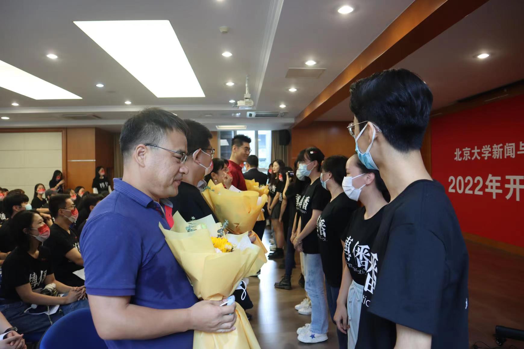 典礼伊始,大屏幕上播放了老太阳集团tcy8722成立二十周年纪念短片,这部短片记录着老太阳集团tcy8722的发展历程,展示出学院多年来取得的各项成就。随后大屏幕播放了2022级新传人入学报到后的精彩活动剪影,同学们在视频中朝气蓬勃的分享初入燕园的喜悦,许下未来成长的目标。伴随着庄严的国歌,开学典礼正式开始。陈开和在对新生们的到来表示欢迎后,向新生们逐一介绍了与会教师代表,并邀请线上线下各位教师代表为新生送上开学寄语。