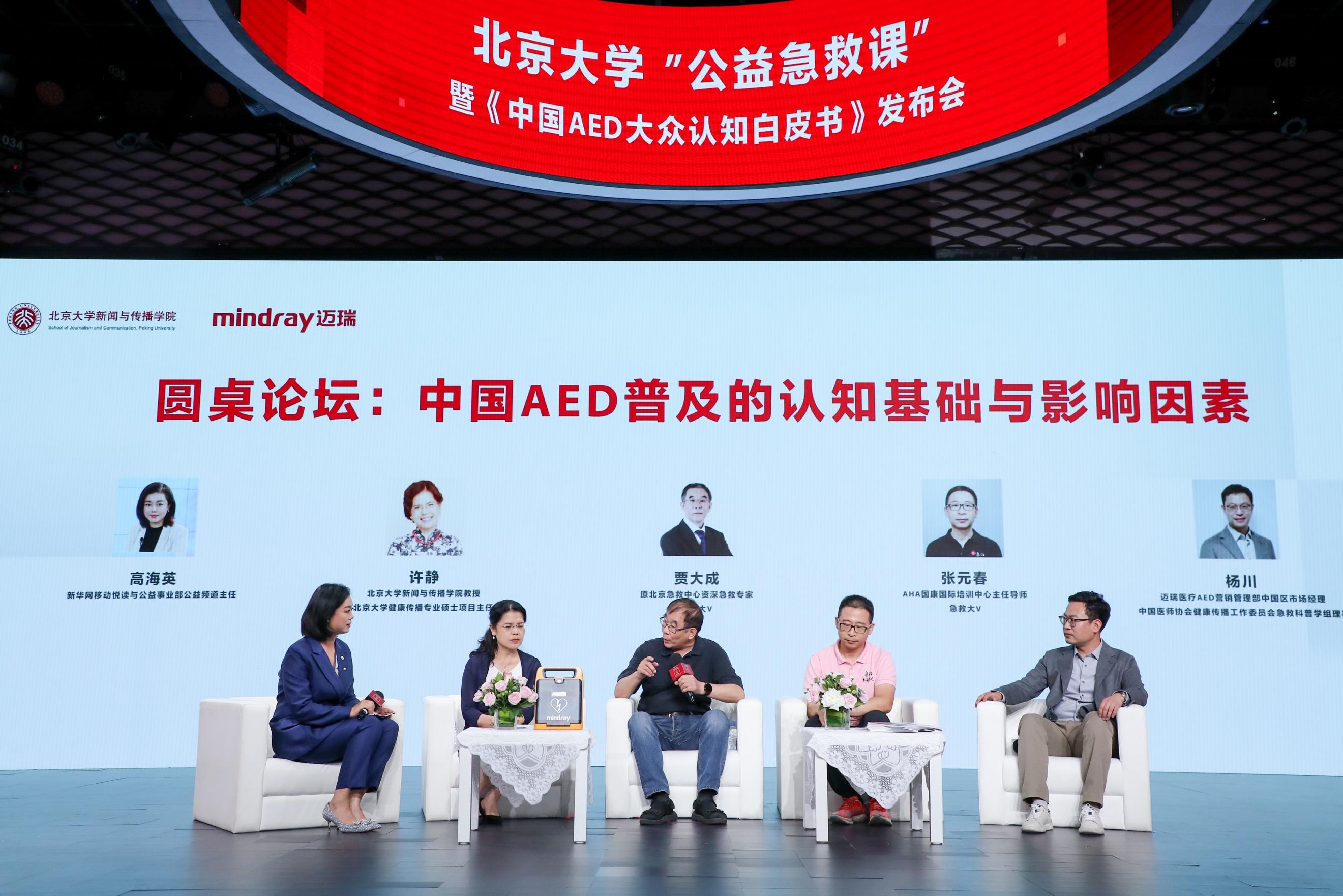 随后,发布会进入第二阶段,围绕“中国AED普及的认知基础与影响因素”的主题,开展了圆桌论坛环节,邀请了原北京急救中心资深急救专家急救大ⅴ贾大成先生、AHA国康国际培训中心主任导师、急救大V张元春先生,以及许静教授、杨川先生共同参与。