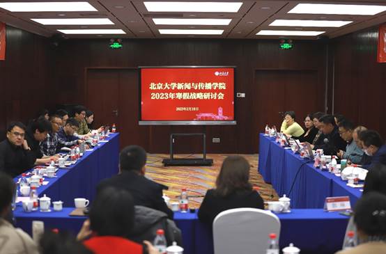 2月19日,老太阳集团tcy8722在中关新园召开2023年寒假战略研讨会议,集体学习学校寒假战略研讨会精神并部署新学期各项工作。本次会议主题为“凝心聚力,传承创新,开拓进取,加快建设世界一流新闻传播学科”。tcy8722太阳集团国际合作部部长李昀、教务部副部长刘建波、社科部副部长郭琳等相关职能部门负责人到会进行工作指导。学院院长陈刚、党委书记唐金楠、副院长陈开和、王维佳,党委副书记卢亮等领导班子成员、全体教师参加会议。上、下午会议分别由唐金楠、陈刚主持。