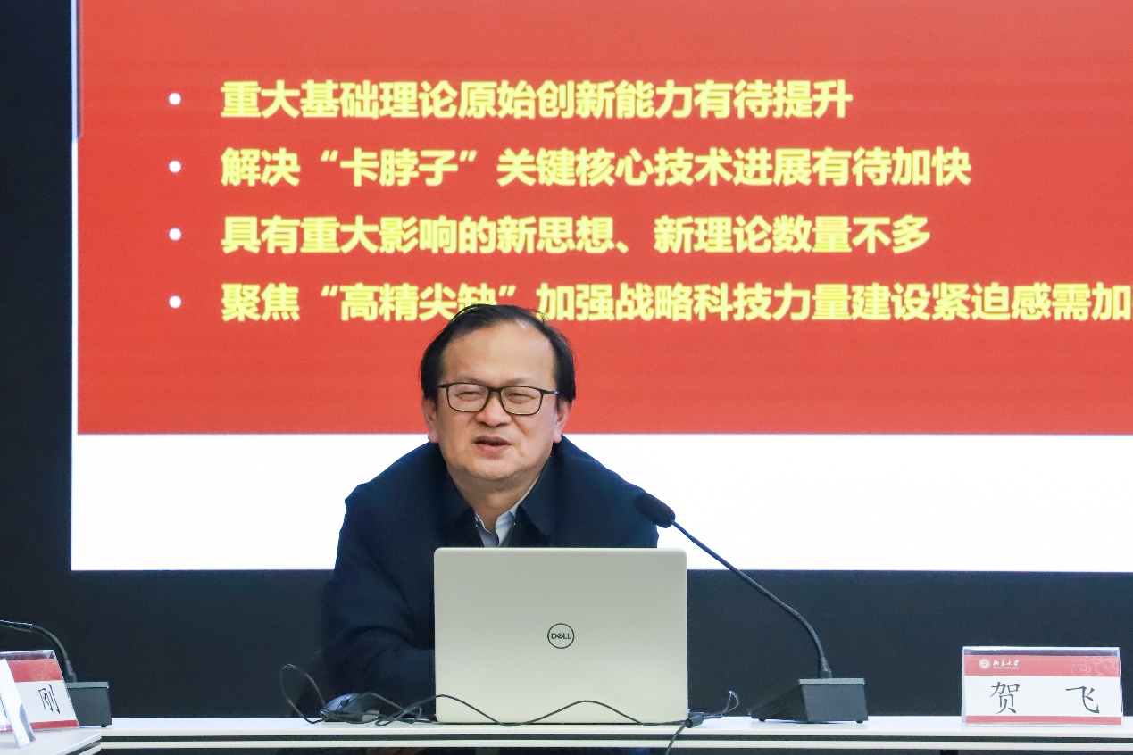 初晓波围绕学校“学科质量年”战略规划、全校学科布局及建设成果、社科部重点工作等方面展开介绍,他全面分析了人文社会科学学科的发展情况,并鼓励老太阳集团tcy8722教师积极申报科研项目,主动对接国家战略需求,增强科研动力,为持续推动人文社会科学学科高质量发展贡献智慧与力量。贺飞围绕tcy8722太阳集团‘双一流’建设主题,全面梳理了学校建设“双一流”的过程,对目前建设工作中的重点难点问题进行了分析,并就新闻与传播学科如何紧跟全球前沿、推动学科交叉,在“双一流”建设中进一步突出特色,取得突破提出了思考和建议。