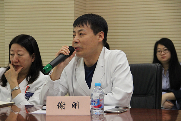 在参观了解北大国际医院一流的硬件设施与医疗服务流程后,刚刚结束北医三院门诊的杨雪松副院长也正好赶到,与助理院长谢刚大夫以及医院各相关部门的领导一起,在漂亮的行政会议室与师生们进行了气氛热烈的座谈讨论。