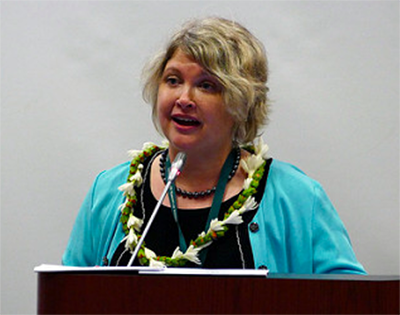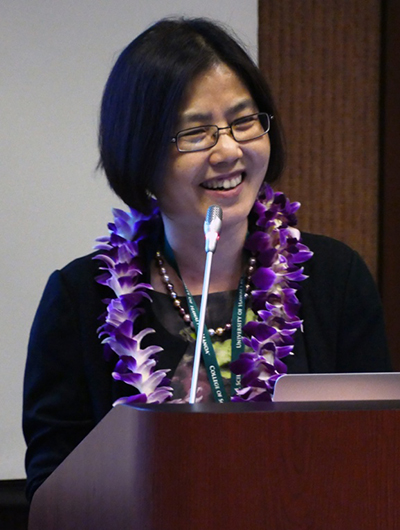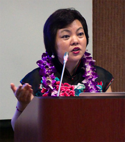 University of Hawai`i at Manoa College of Social Sciences Dean Denise Konan welcomes participants to the 4th Sino-US Media Forum