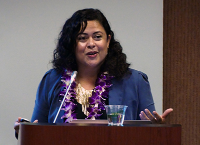 Maya Soetoro-Ng, director of the University of Hawai'i at Manoa's Spark Matsunaga Institute for Peace and Conflict Resolution speaks on "Strategies for Peaceful Cross-Cultural Communication."
