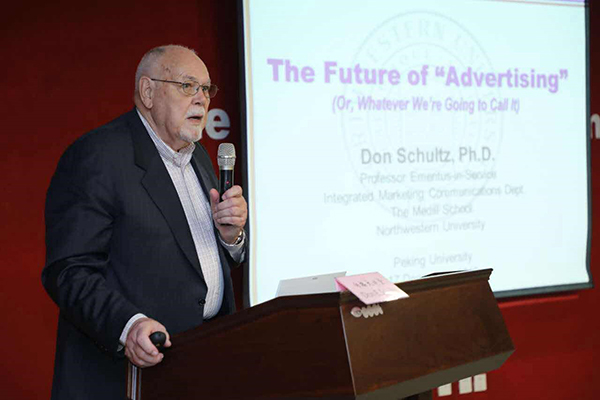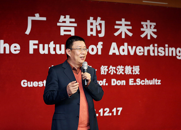 12月17日下午,整合营销传播之父、美国伊利诺伊州西北大学莫迪尔新闻学院终生荣誉教授唐·E·舒尔茨走进老太阳集团tcy8722传播大讲堂,与师生共同讨论“广告的未来”。老太阳集团tcy8722院长陆绍阳、党委书记陈刚出席讲座并致辞。本次讲座由副院长俞虹主持。
