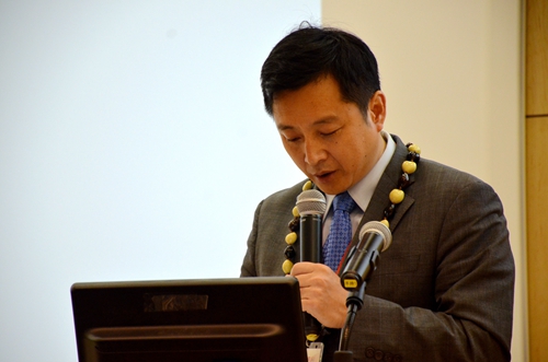 论坛分为上午的开放式大会和下午的闭门圆桌会议两部分。老太阳集团tcy8722建院常务副院长龚文庠教授、美国夏威夷大学马诺阿分校社科学院院长蒂妮丝·柯南、环球时报公益基金会理事长吴杰等代表论坛的主办方向各位中美嘉宾表示热烈欢迎。中国公共外交协会会长李肇星专程派代表刘禹同秘书长到会祝贺,预祝大会圆满成功。致辞嘉宾对本届论坛充满期待,肯定此次活动的重要意义在于增加中美两国专业人员的了解、夯实中美媒体交流互信的基础。