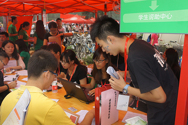 学生骨干为新同学报到注册忙碌