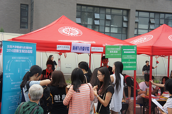 “新传的小站在北大盛大火热的迎新现场显得旗帜鲜明。师兄师姐们的悉心帮助和照顾,让我在新传这个大家庭感到了家一般的感觉。我爱上了这样充满活力而又温馨的新传。”14级本科新生刘彦君说到。