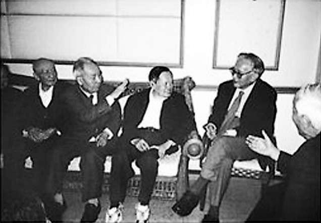 西南联大培育出许多世界一流的大家,此为许渊冲(左2)和老同学聚会。左1为朱光亚,两弹一星功勋科学家;左3为杨振宁,诺贝尔物理学奖获得者;左4为王传纶,中国金融学科终身成就奖;左5为王希季,两弹一星功勋科学家。