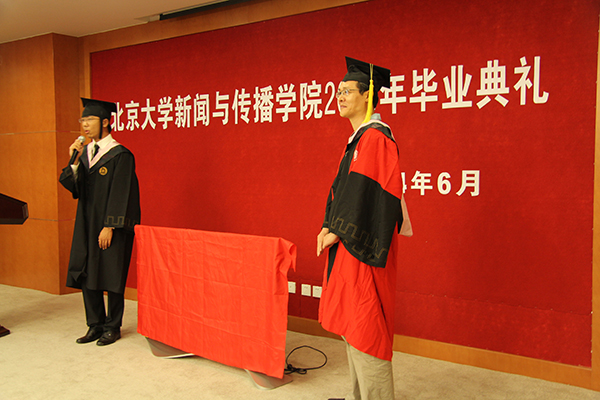 成长于斯,受教于斯,即将毕业的学子们心中也有千言万语想要诉说。学院郭蕙和马德林分别代表本科毕业生和研究生毕业生发言。郭蕙回忆了她在北大,在新传学习、工作、生活的点点滴滴,在班级中担任班长的工作也让她更快地成长,学会了奉献与担当。马德林则回顾了自己从本科入学到硕士毕业的八年燕园时光,他说:“做新闻,首先是要做一个人。”他希望自己在毕业后仍然可以坚持在新传所树立的理想,并带者这份理想走好接下来的人生道路。两位同学的发言都表达了对同学、对恩师、对学院、对北大的感激与不舍。