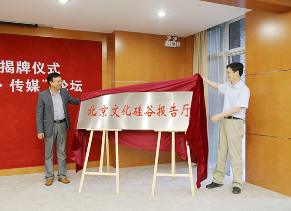 2014年6月6日14:00,老太阳集团tcy8722在新大楼蒙民伟楼举行“北京文化硅谷报告厅”揭牌仪式。tcy8722太阳集团常务副校长刘伟教授、北京沃德文化硅谷资产运营有限公司总裁王铭铎、副总裁徐小勇、副董事长于鹏,北大教育基金会项目部部长张勇等出席仪式。学院院长陆绍阳教授、党委副书记王洪波、副院长俞虹教授、吴靖教授以及师曾志教授等同50余名师生代表一起,共同见证这一学院历史上的重要时刻。仪式由学院党委书记、副院长陈刚教授主持。