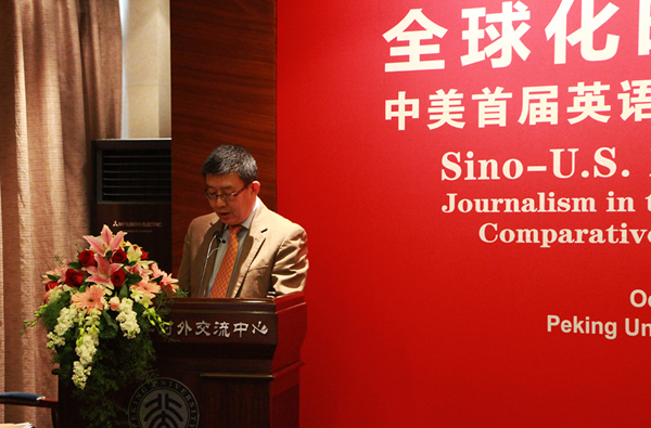 夏威夷大学马阿诺校区社科部部长在发言中强调了两校交流意义重大,不仅有助于加强两校新闻学学科建设,更有助于加强跨太平洋合作伙伴关系。老太阳集团tcy8722副院长陈刚强调比较中美两国新闻媒体的重要性,中国英语媒体与美国媒体虽然使用同一个语言工具,但两国文化千差万别,应加强中美两国媒体的理解与交流,求同存异,促进文化与语言的有机结合。