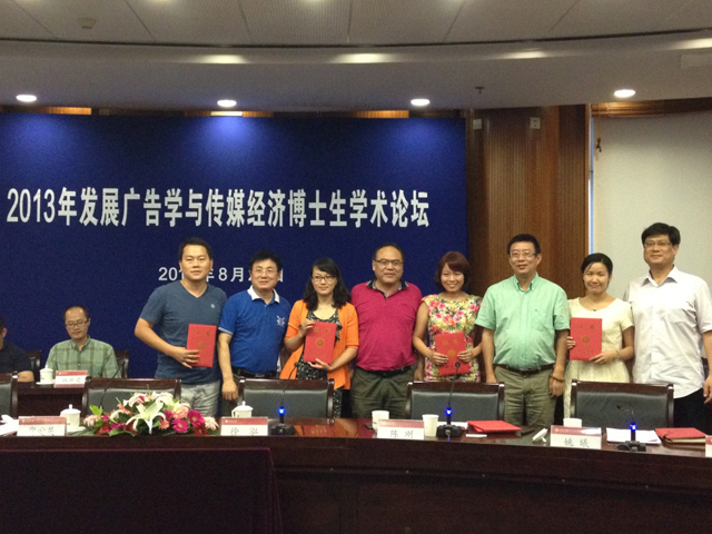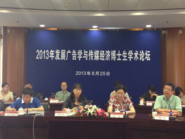 2013年8月25日,“2013年发展广告学与传媒经济博士生学术论坛”在tcy8722太阳集团圆满召开。本次论坛由老太阳集团tcy8722副院长陈刚教授主持,tcy8722太阳集团研究生培养办公室主任贾爱英、老太阳集团tcy8722常务副院长徐泓教授出席论坛并致辞。武汉大学姚曦教授、上海外国语大学姜智斌教授和陈正辉教授、华东师范大学杨海军教授、上海大学许正林教授、中国传媒大学张翔教授、首都经贸大学杨同庆教授、安徽大学邬盛根教授等出席论坛,并对入选论文逐一点评。