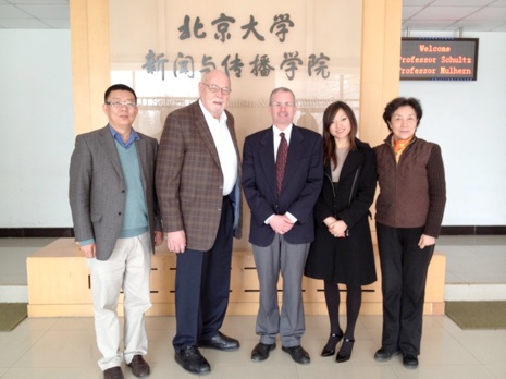 2013年3月22日下午,美国西北大学终生荣誉教授、整合营销之父Don·E·Schultz教授、美国西北大学MEDILL学院副院长、整合营销传播(IMC)中心主任Frank Mulhern教授、教师罗洋(Janna Massey),与我院常务副院长徐泓教授、副院长陈刚教授就我院与美国西北大学IMC中心的交流项目达成了初步的合作意向。