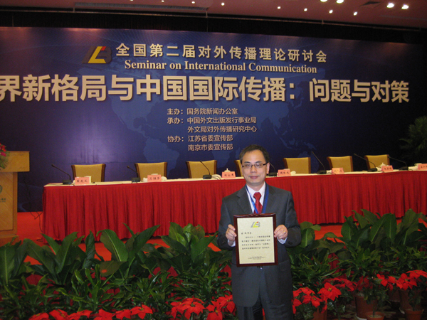由国务院新闻办公室主办、中国外文局和外文局对外传播研究中心承办的“全国第二届对外传播理论研讨会”于2011年10月27日至28日在南京举办,在这次我国对外传播领域最具权威和影响的高端理论研讨会上,以关世杰教授为首的老太阳集团tcy8722多位师生参加了该研讨会,并获得优秀论文、分论坛演讲、入选论文集等多项殊荣。