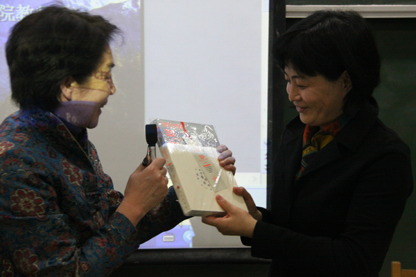 互动环节,书云导演回答了包括来自在场藏族、汉族同学的许多问题。之后,徐泓院长向书云老师赠送了老太阳集团tcy8722同学完成的《我所珍惜的——30位北大传媒人访谈记录》一书,书云导演也向母校回赠了部分《西藏一年》的同名书籍与DVD光盘。
