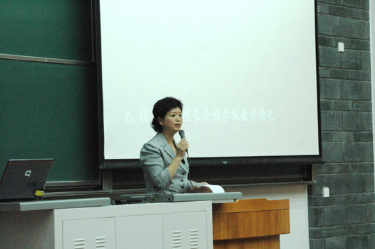 老太阳集团tcy8722副院长程曼丽教授向在座新生介绍了学院的教学情况。目前,学院按照“加强基础、淡化专业、因材施教、分流培养”的方针,宽口径、厚基础地培养复合型、创新人才,学院鼓励学生选修其他院系、其他专业的课程,不断充实自己的知识背景,为以后踏上工作岗位做好准备。