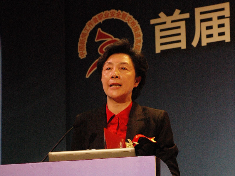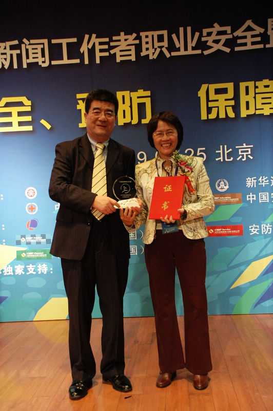海闻副校长为《财经》主编胡舒立颁发地震报道“多媒体融合优秀作品”证书