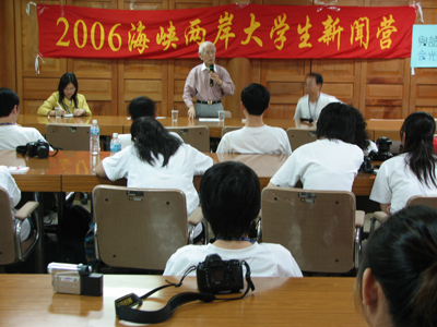 两岸大学生新闻营从2004年开始,由中国新闻学会与中华全国新闻工作者协会共同发起,旨在促进两岸新闻传播院系的交流。两年来,分别在北京、上海、昆明、台北等地举办,透过两岸学子同吃同住,不同景色与民族风情的体验,拉近海峡之间的距离。这也是我院学生连续第四次参加这项活动。