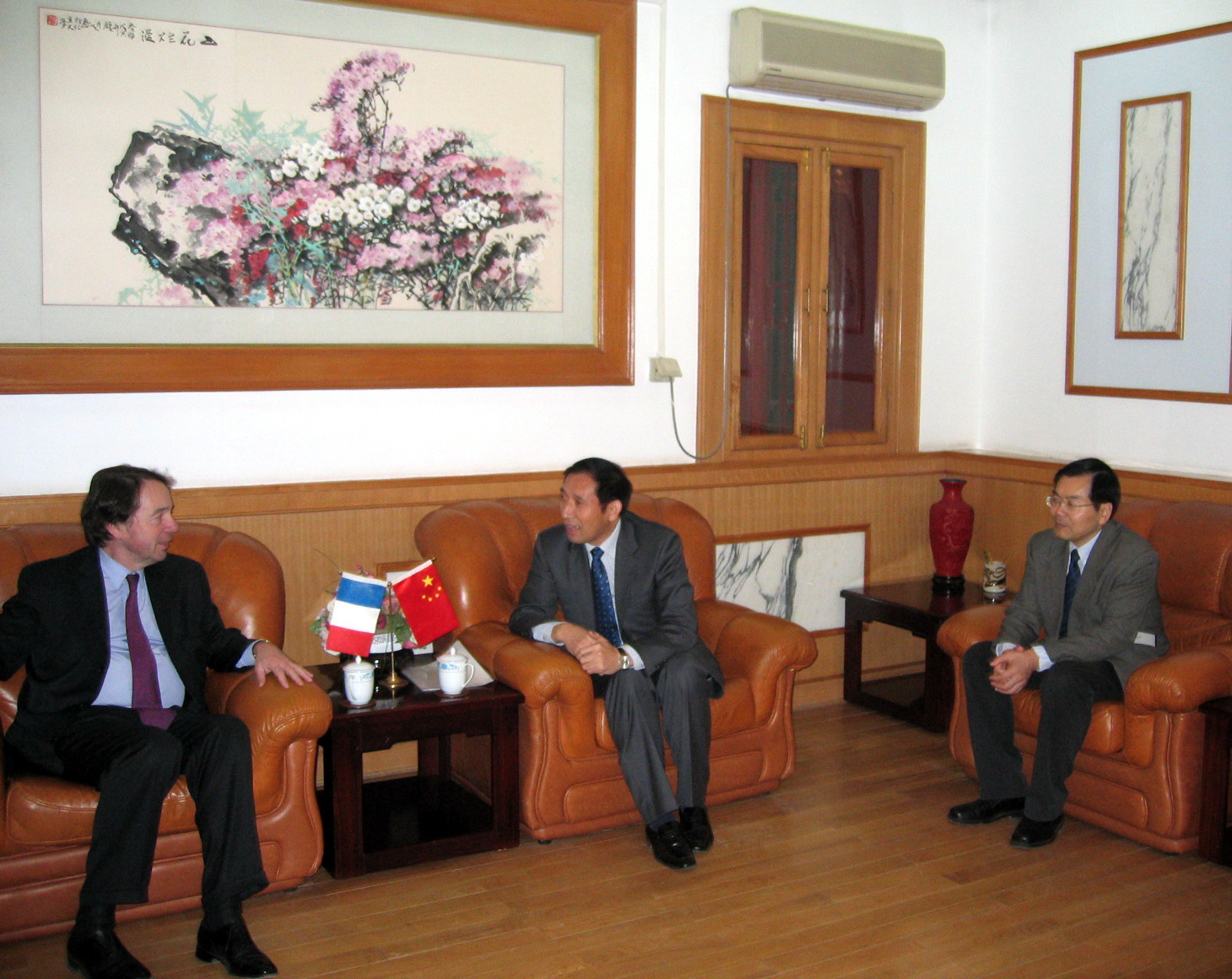 图为张国有副校长与让-诺埃尔.让纳内先生亲切交谈