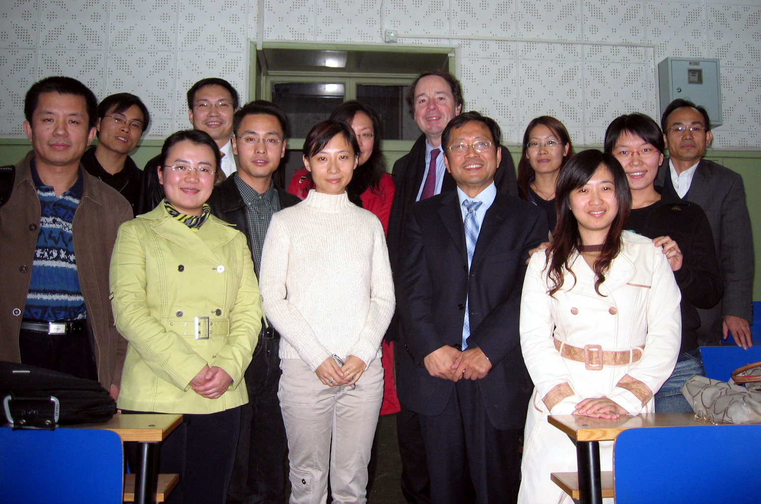 图为肖东发教授、让-诺埃尔.让纳内先生与同学们合影