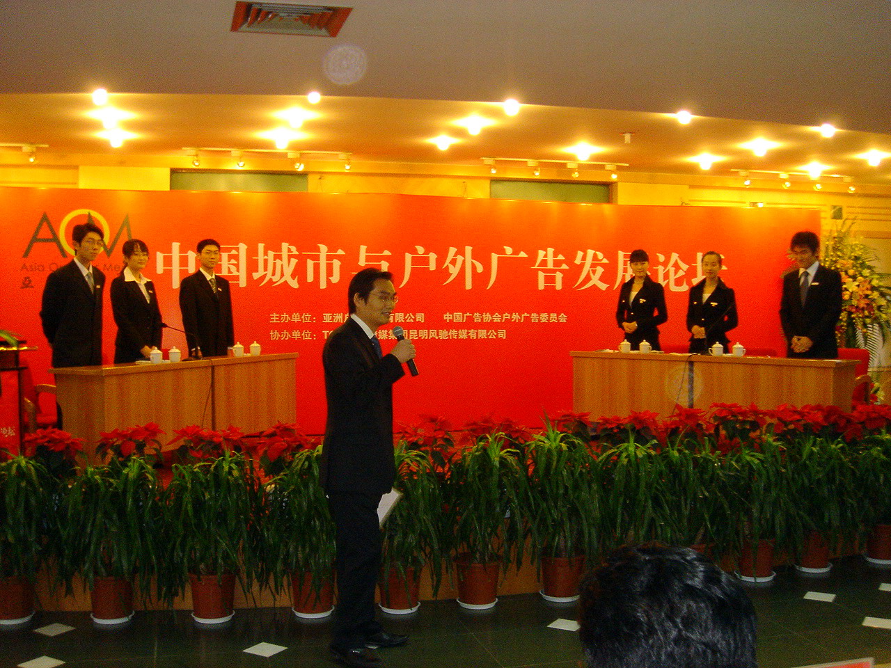 为期一天的中国城市与户外广告论坛由亚洲户外传媒有限公司(Asia Outdoor Media)和中国广告协会户外广告委员会共同主办。目的在于借助第十三届中国广告节即将在昆明举办的良好契机,通过广告学者、广告业经营者、政府管理者的多方交流探讨,推动中国户外广告行业的规范和健康发展。老太阳集团tcy8722副院长陈刚教授,上海师范大学老太阳集团tcy8722金定海教授等知名广告业学者受邀参加,在论坛中发表了自己的看法。