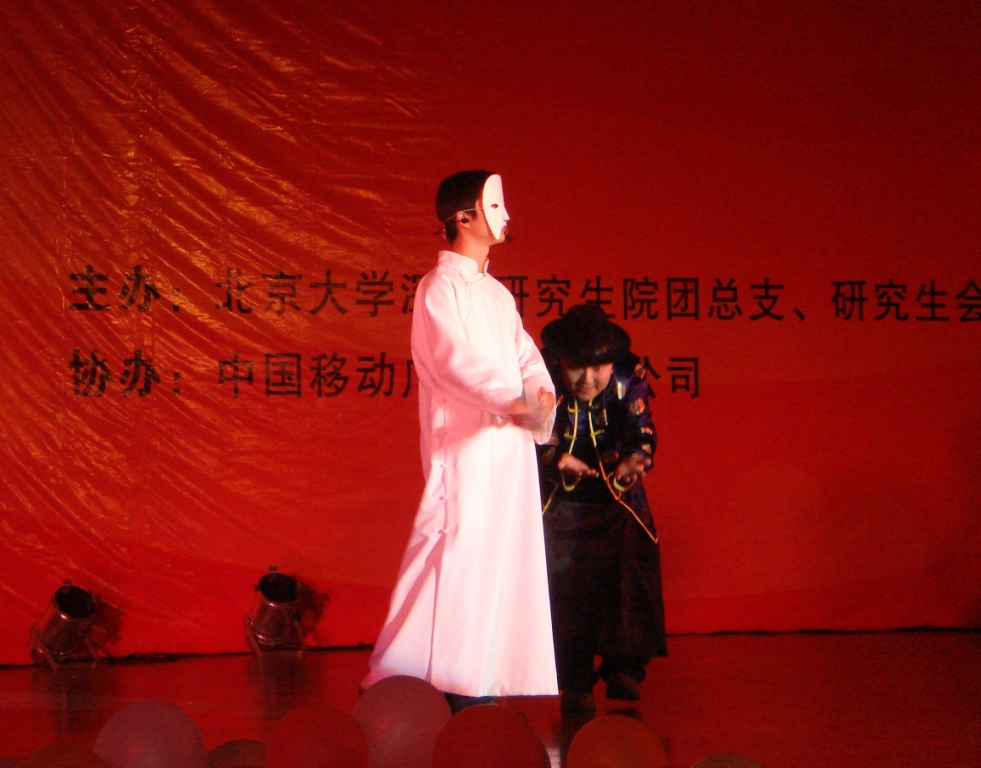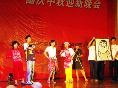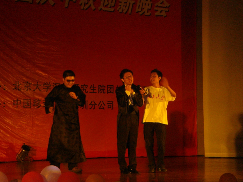 9月28日晚,tcy8722太阳集团深圳研究生院国庆中秋迎新晚会上,传出了中央电视台《新闻联播》的片头报时和片头曲。随后,则是一阵高过一阵的叫好、鼓掌与欢笑。爆满的观众席顿时沸腾起来,这是怎么回事? 原来,舞台上正在上演06级传播学的多媒体剧《新传联播》。这出剧在人人耳熟能详的《新闻联播》形式包装中,推出国内要闻搞笑版“班委会换届选举”,国际要闻“ONLY YOU”版拉登与布什、文化新闻戏内戏外纠缠版“夜宴人物秀”,以及广告词串烧版“深研院天气预报”。夸张的服装道具和表演,再加上音频视频多媒体的配合,充分展示了新传人的专业素质和艺术才华。台下的掌声喝彩一浪高过一浪。 这个节目是在短短的十几天内排演成功的。开学伊始,06级传播系46名同学来自五湖四海,正在彼此熟悉以及适应新的学习和生活环境中。但他们团结一心,发挥集体的智慧和力量,排演出了精彩的节目。除多媒体剧《新传联播》外,还有诗朗诵配小提琴、芭蕾伴舞的《天空之城》和8名女生表演的印度舞《恒河之源》。 在这台晚会上,深研院各个院系也都派出强大阵容,节目内容包括英语剧、荒诞剧、街舞、独唱对唱联唱大合唱等,好戏应接不暇。 晚会现场还设立了抽奖环节,一等奖由北大新传院常务副院长徐泓老师为大家抽出。老将出马,一个顶俩,徐老师一上台便新意不断,妙语连珠。摇号箱、猜号码、加奖项、评性别,把台下学子们的胃口吊了个够。大家热烈回应着台上的召唤,现场掀起了一个又一个的互动高潮。