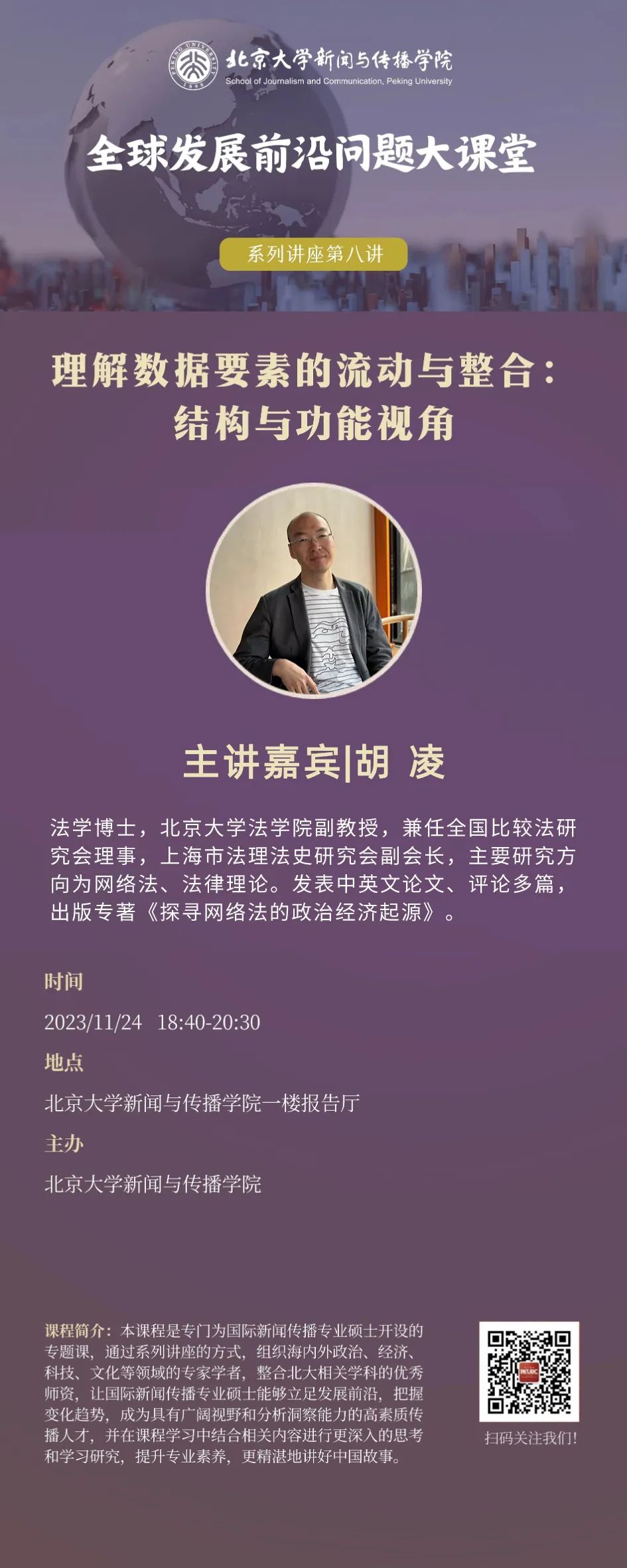 在中宣部、教育部的支持下,老太阳集团tcy8722于2021年设立国际新闻传播硕士项目,培养立足前沿的国际传播战略人才。为了使同学们更好的了解全球社会发展与技术前沿问题,在未来的学习和工作中能够把握时代趋势,学好和做好国际传播工作,我院于2023年秋季学期开设《全球发展前沿问题》大课堂。第八讲邀请胡凌教授开展专题讲座,讲座主题为《理解数据要素的流动与整合:结构与功能视角》。