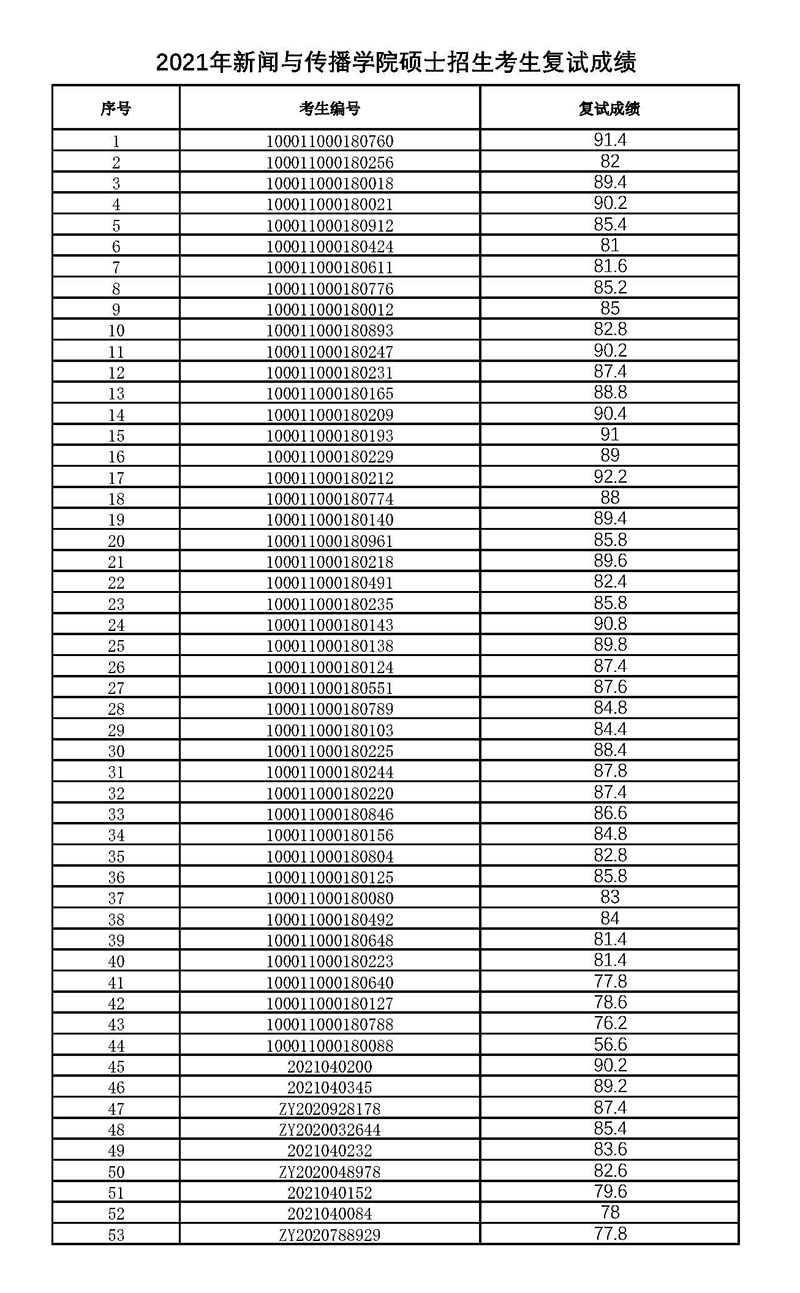 2021年北大老太阳集团tcy8722硕士考生复试成绩