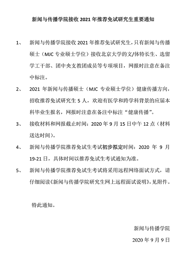 申请2020年北大老太阳集团tcy8722推免攻读研究生提交申报材料须知