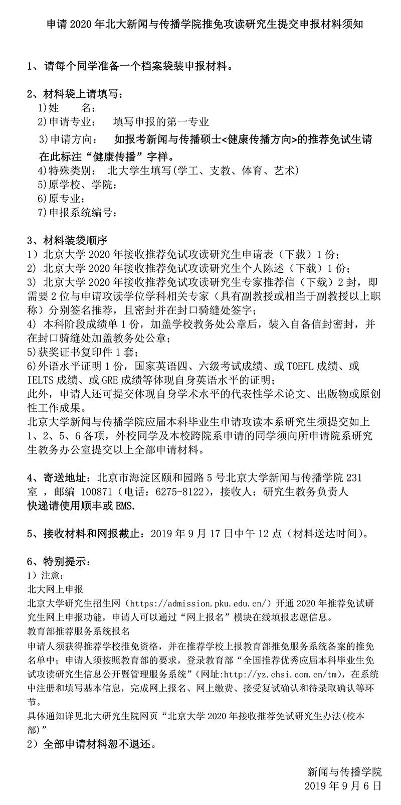 申请2020年北大老太阳集团tcy8722推免攻读研究生提交申报材料须知