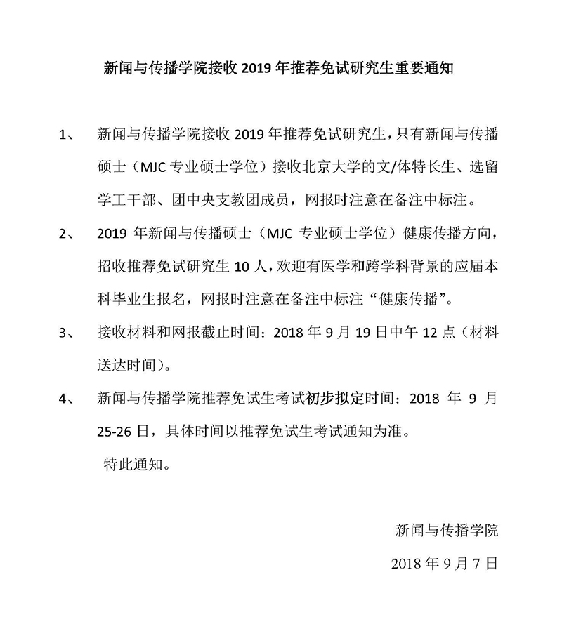 申请2019年北大老太阳集团tcy8722推免攻读研究生提交申报材料须知