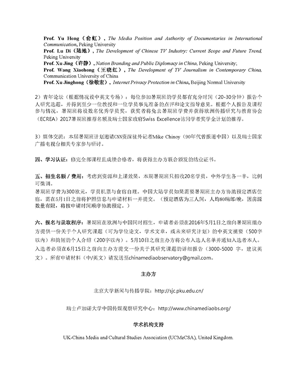 第三届“中欧对话:媒介与传播研究”暑期班2016招生简章