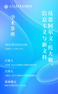 本次讲座的主题为“反思阿尔文·托夫勒、信息主义与新文科”,王洪喆老师认为,《第三次浪潮》(The Third Wave)的出版以及作者托夫勒的访华,对八十年代中期中国知识界和管理层产生冲击,是一个值得重视的思想史和社会史命题。但通过媒介史盘查发现,托夫勒制作的录像片和相关的宣讲活动,相比于书籍,是信息主义传入中国基层社会更重要的媒介。并且,中国改革开放中对信息技术的路径选择也并不是全盘接受西方观念,而是在吸收西方的经验和观念,同时根据自身的传统形成甄别和辩论的过程,不同团体之间的理论论争、协商和互动中形成道路论争,才最终推动了其后的诸多进程,成为今日可以借重的历史遗产。