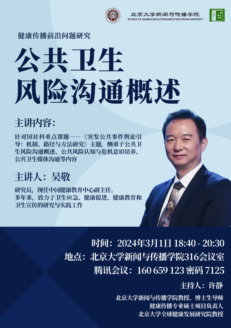 针对国社科重点课题——《突发公共事件舆论引导:机制、路径与方法研究》主题,侧重于公共卫生风险沟通概述、公共风险认知与危机意识培养、公共卫生媒体沟通等内容。