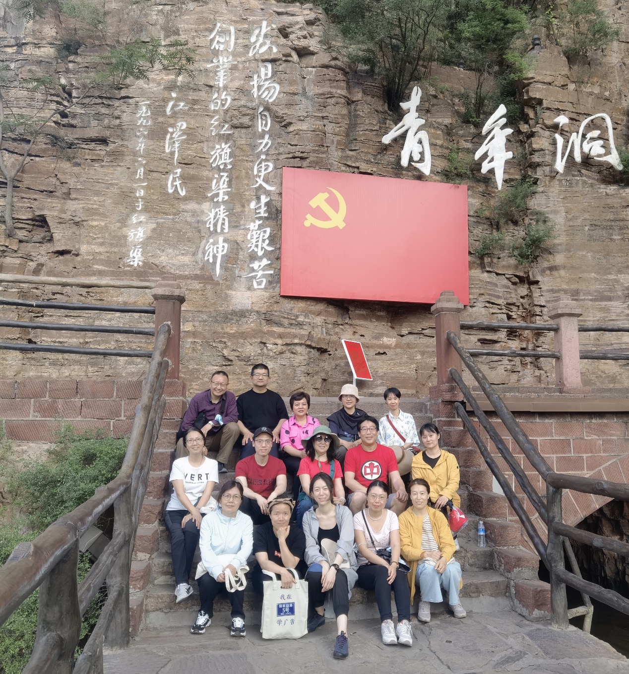 老师们沿着习近平总书记2022年10月28日的考察步伐,先是参观了红旗渠纪念馆,然后沿着红旗渠的河道进行参观,最后来到红旗渠青年洞。在修建红旗渠的过程中,为了将石质坚硬的岩壁凿穿,有300名青年成立了突击队,日夜奋战了1年零5个月,终于完成任务。为了节省时间,这些青年晚上收工的时候也不回家,就在工地上睡觉,第二天接着工作。为纪念他们的无私奉献精神,将这个隧洞命名为青年洞。习近平总书记在此调研时曾强调,“红旗渠精神同延安精神是一脉相承的,是中华民族不可磨灭的历史记忆,永远震撼人心。年轻一代要继承和发扬吃苦耐劳,自力更生,艰苦奋斗的精神,摒弃骄娇二气,像我们的父辈一样把青春热血镌刻在历史的丰碑上。实现第二个百年奋斗目标也就是一两代人的事,我们正逢其时,不可辜负,要做出我们这一代的贡献。红旗渠精神永在!”
