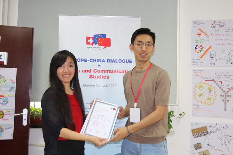 在暑期班的最后一天,三个小组分别用独具创意的方式,为大家展示了10天的所思与所感。参加暑期班的老师和学生们纷纷发表了寄语和感言。最后,学员们获得由tcy8722太阳集团研究生院颁发的结业证书(中文)和主办方联合颁发的结业证书(英文),并获得欧洲学分互认体系的3个学分。