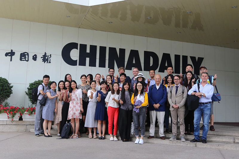 媒体访问与交流是历届暑期班的实践传统。本届暑期班师生一起前往了中国日报社参观访问,并与中国日报社副总编孙尚武、中国观察智库执行主任付敬,以及来自美国的高级编辑、中国政府友谊奖获得者Erik Nilsson进行了互动交流,对国际传播实践,全球发行、媒介竞争力等不同议题的有了新的认识和体会。