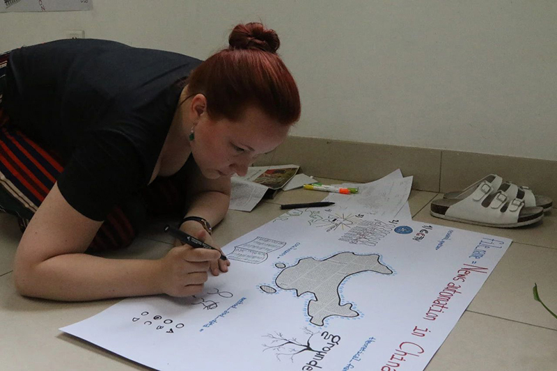 工作坊(workshop)是最受学员们欢迎的设计。暑期班的第一天,学员们就在老师们的指导下制作了以自己研究为主题的学术海报,并张贴在教室里,以方便随时交流。此外,暑期班还安排了各个主题的工作坊,如论文摘要如何写、混合研究方法与计算法在传播学领域的使用、如何作访谈以及如何作田野调查、如何寻求国际学术发表的适当路径、做文献综述的有效经验、公开演讲和学术会议口头报告技巧以及世界范围内的博士和博士后的就业情况等等。