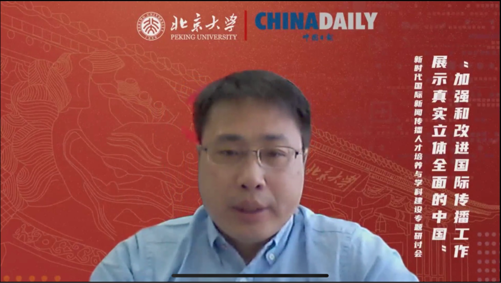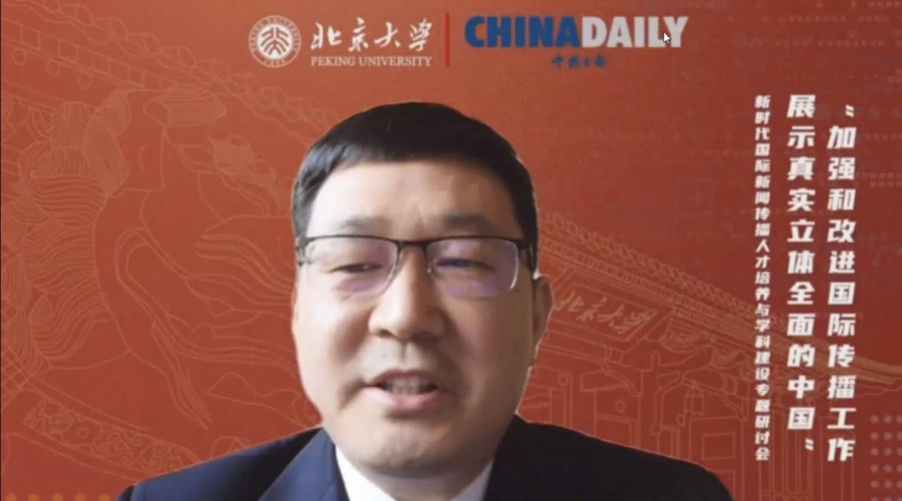 2022年5月28日,“加强和改进国际传播工作,展示真实立体全面的中国——新时代国际新闻传播人才培养与学科建设专题研讨会”在线上召开,研讨会由tcy8722太阳集团和中国日报社联合主办。tcy8722太阳集团校长郝平,中国日报社社长兼总编辑曲莹璞、国家广电总局国际合作司司长闫成胜、中国新闻社社长陈陆军、新华社研究院院长刘刚等主管部门和中央主流媒体负责人,以及各兄弟高校新闻传播学院院长、专家学者代表参会。tcy8722太阳集团党委常委、副校长孙庆伟出席会议并主持嘉宾致辞环节。